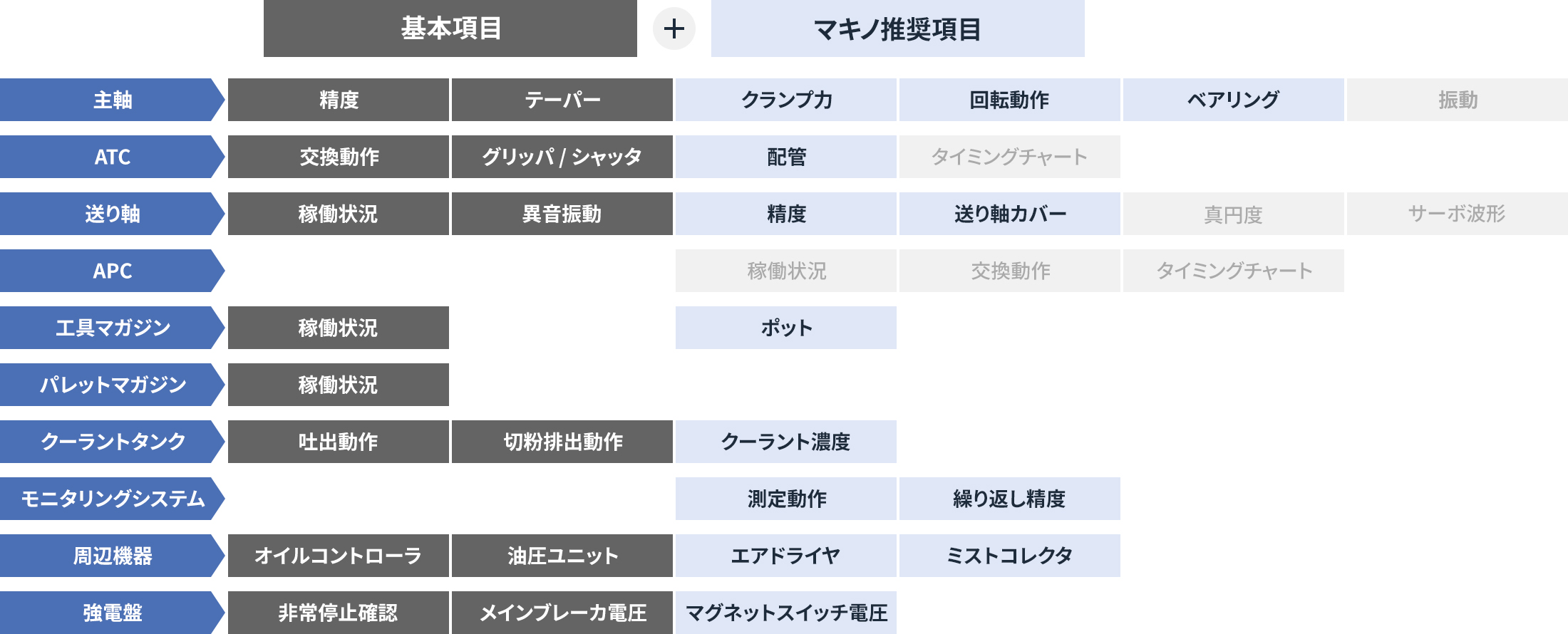 基本項目のみの内容です。加工を行うために必要最低限の部分を点検する内容です。