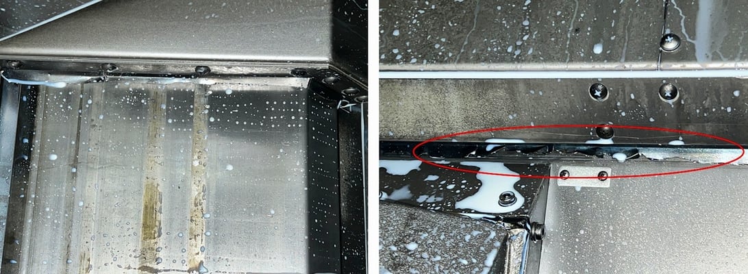 そのまま機械を使用し続けると、切りくずやクーラントがカバー内部へ侵入し、リニアガイドやボールねじ、各種配線等の早期摩耗、損傷につながります。